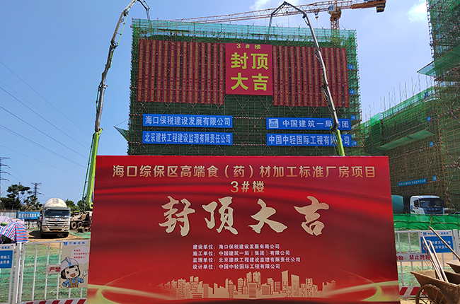 • 海口综保区高端食(药)材加工标准厂房项目主体结构首栋封顶