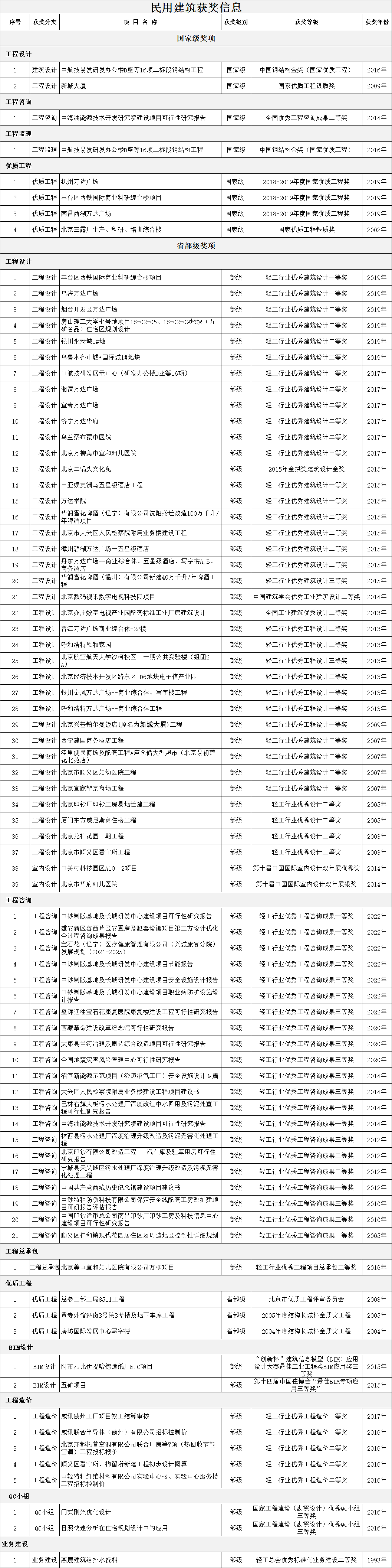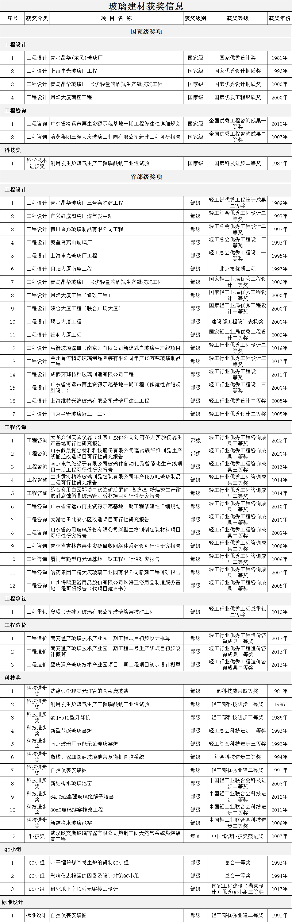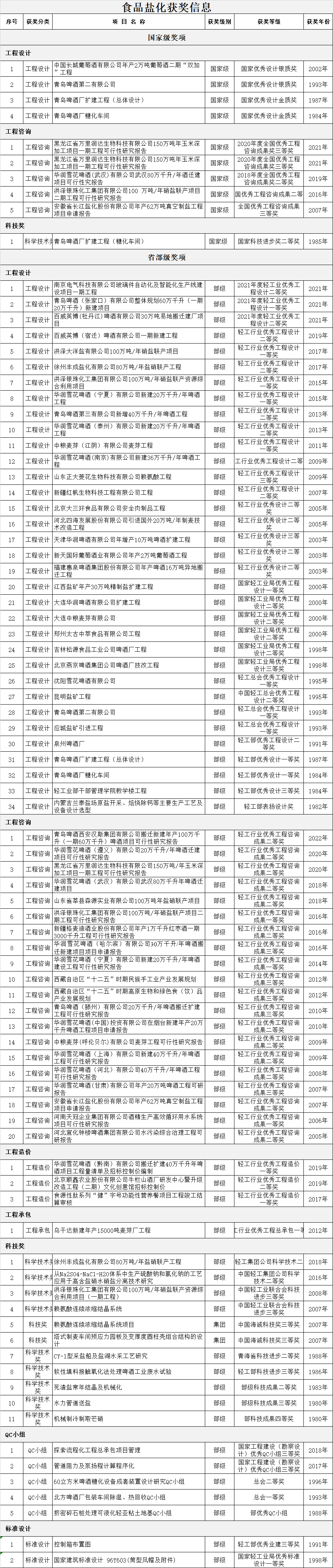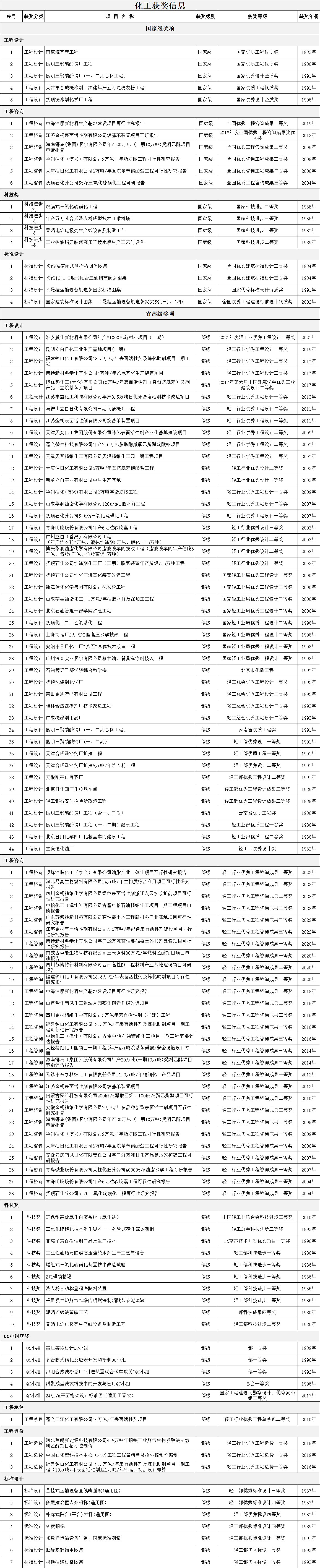 公司共获得部(委)级以上各种嘉奖619项,其中:国家级奖项共72项;部(委)级奖项共547项。
