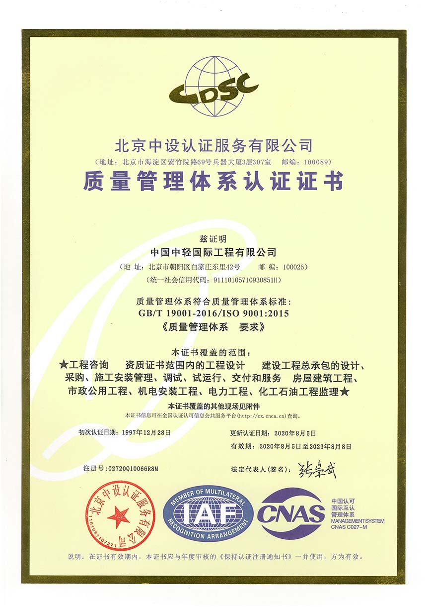 • 质量管理体系认证 有效期2023年8月8日
