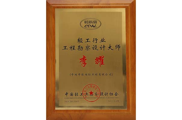 轻工行业勘察设计大师:李耀 靳福明 蒋智英 张桂卿  彭赛军 陈军 何嘉欣 李晓红 刘宇