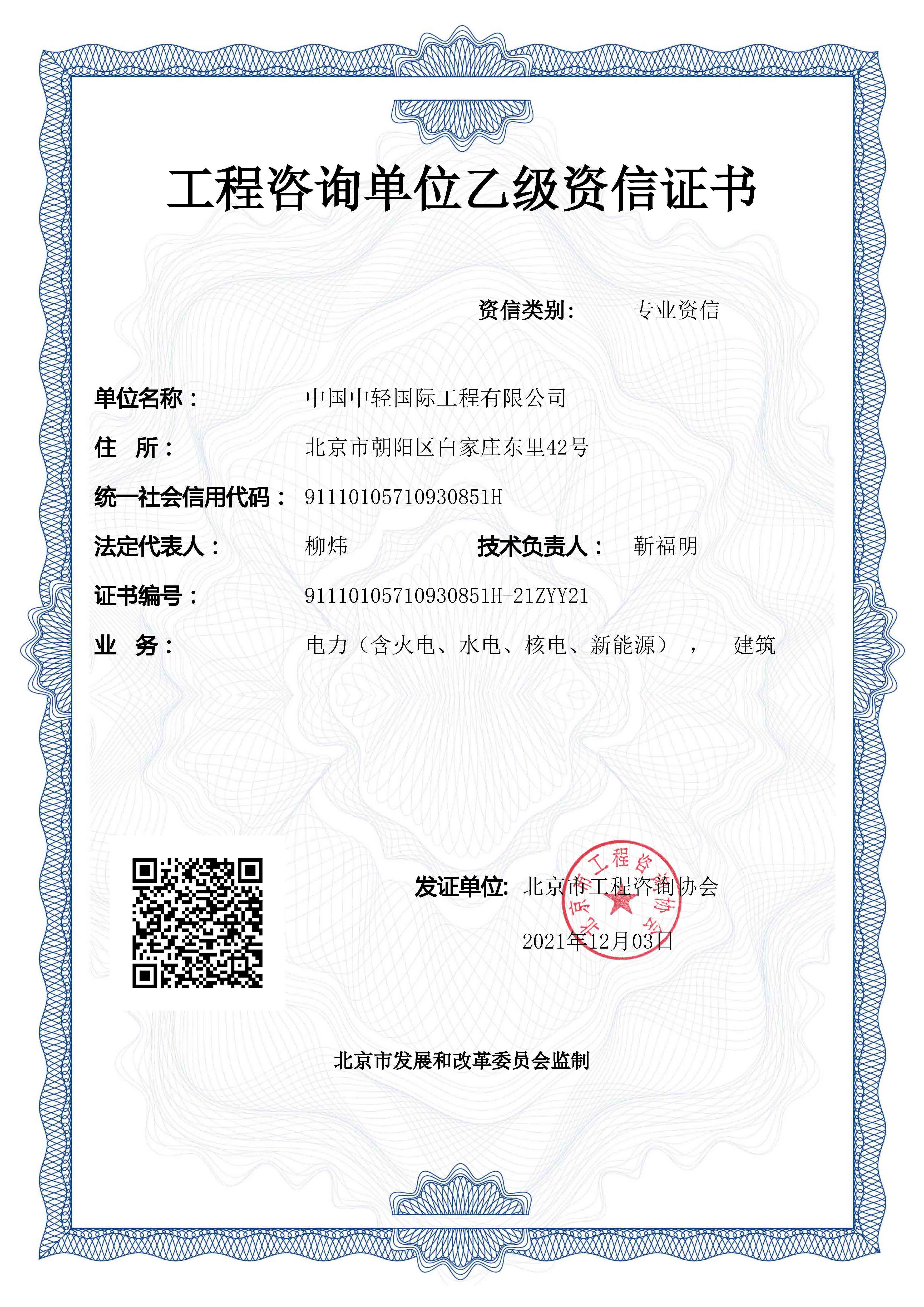 • 工程咨询单位乙级资信证书2027年9月28日