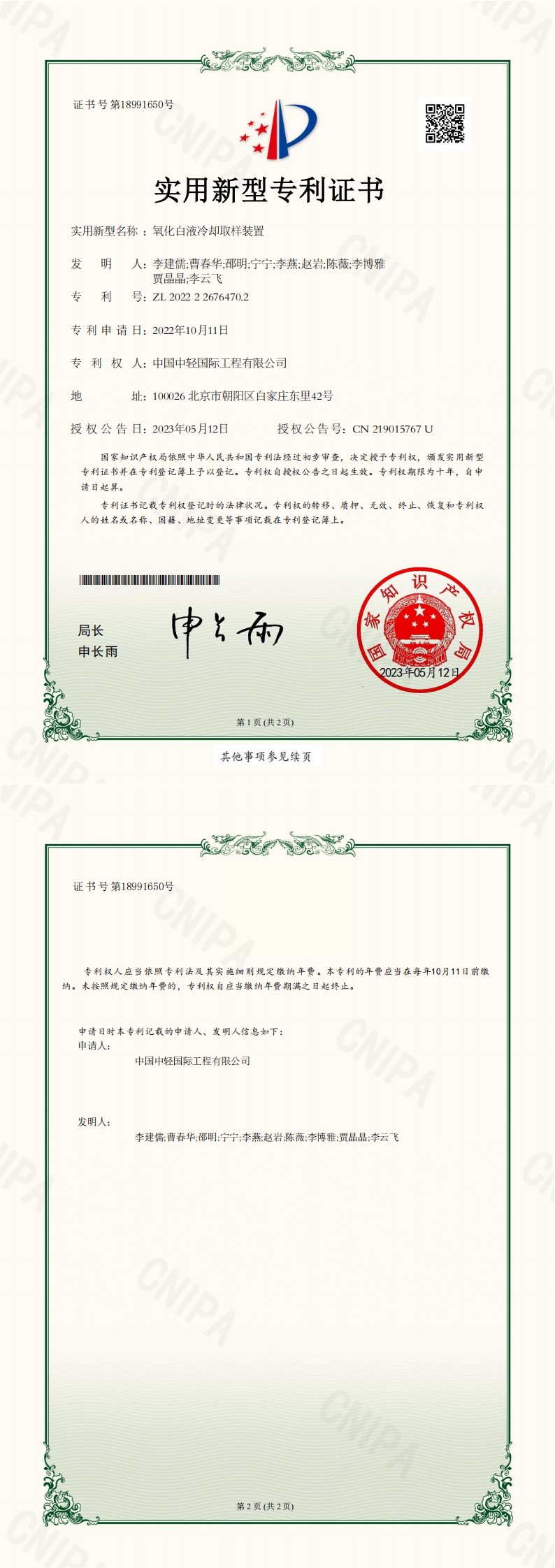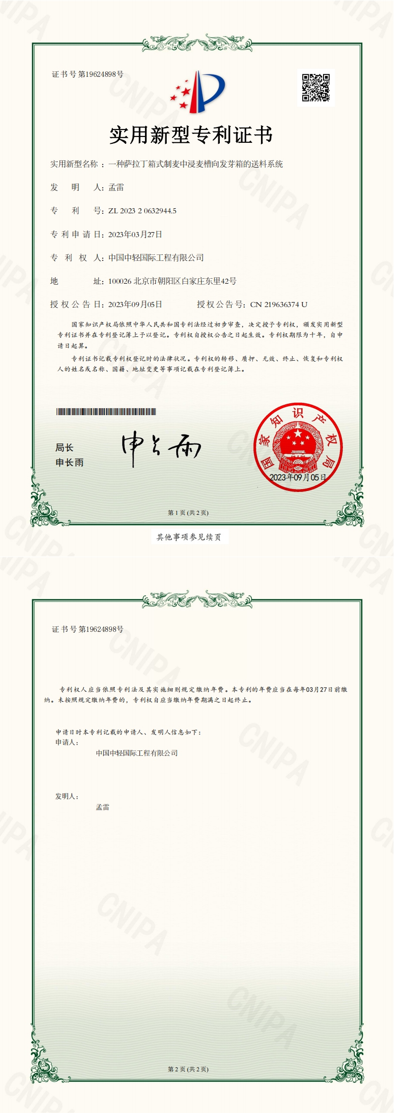 专利证书